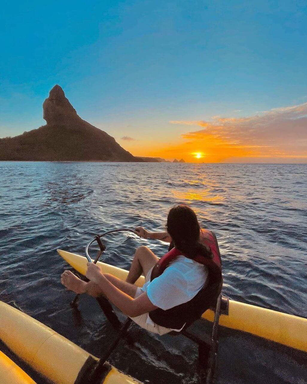 Versão de bikeboat com assento reclinável para você relaxar enquanto pedala.