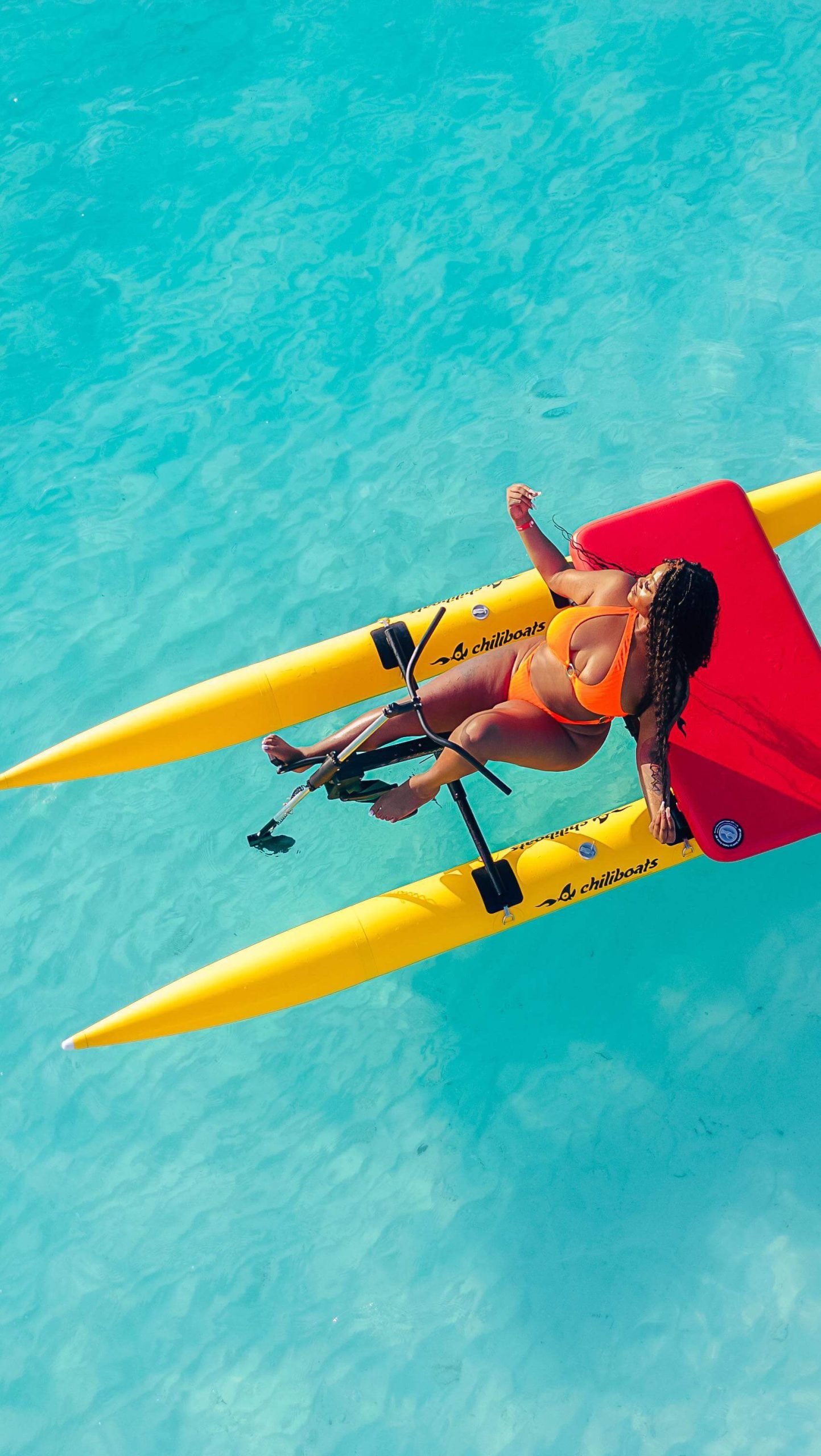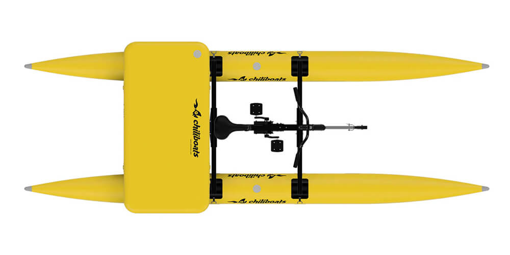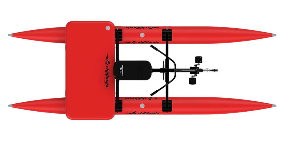 Plataforma inflável que pode ser usado em todos os modelos das Bikes Chiliboats. Se o deck estiver no Bikeboat Up ou Rec tamanho padrão (até 120 kg) permite levar no deck uma criança ou pet, se o deck estiver nas versões Bikeboat BIG ou Tandem permite levar no deck um adulto.